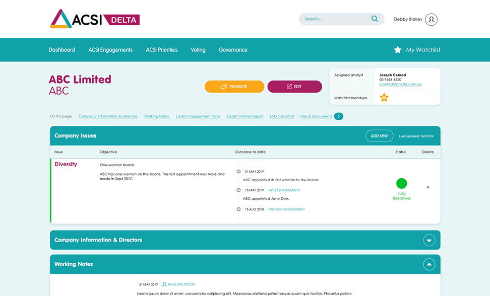 ACSI partnered with NOW Digital to build a tool to enable ACSI and their members to improve the retirement savings of millions of Australians by being more effective in influencing companies to better manage their environmental, social and governance risks. NOW, through discovery workshops gained the domain knowledge to successfully design and develop a web-accessible platform solution.