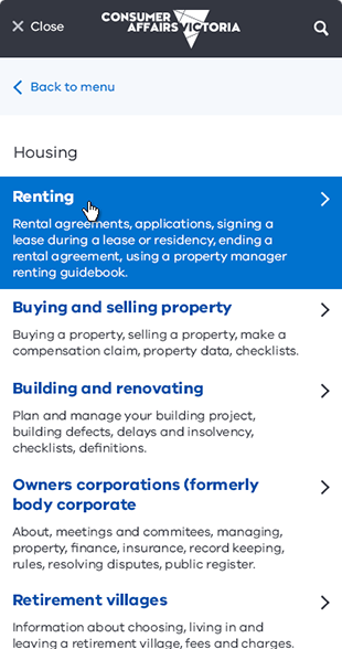 NOW delivered a modern, fully-responsive user interface while maintaining full WCAG 2.0 AA compliance across multiple audits by independent accessibility consulting firms. The website uses innovative menu behaviours, validated through extensive user testing and prototyping, and responsive layouts to deliver a ground-breaking user experience across all devices, while leveraging integration with ReadSpeaker and SoundCloud to provide assistive technology support and provide a truly accessible experience to Victorian consumers.
