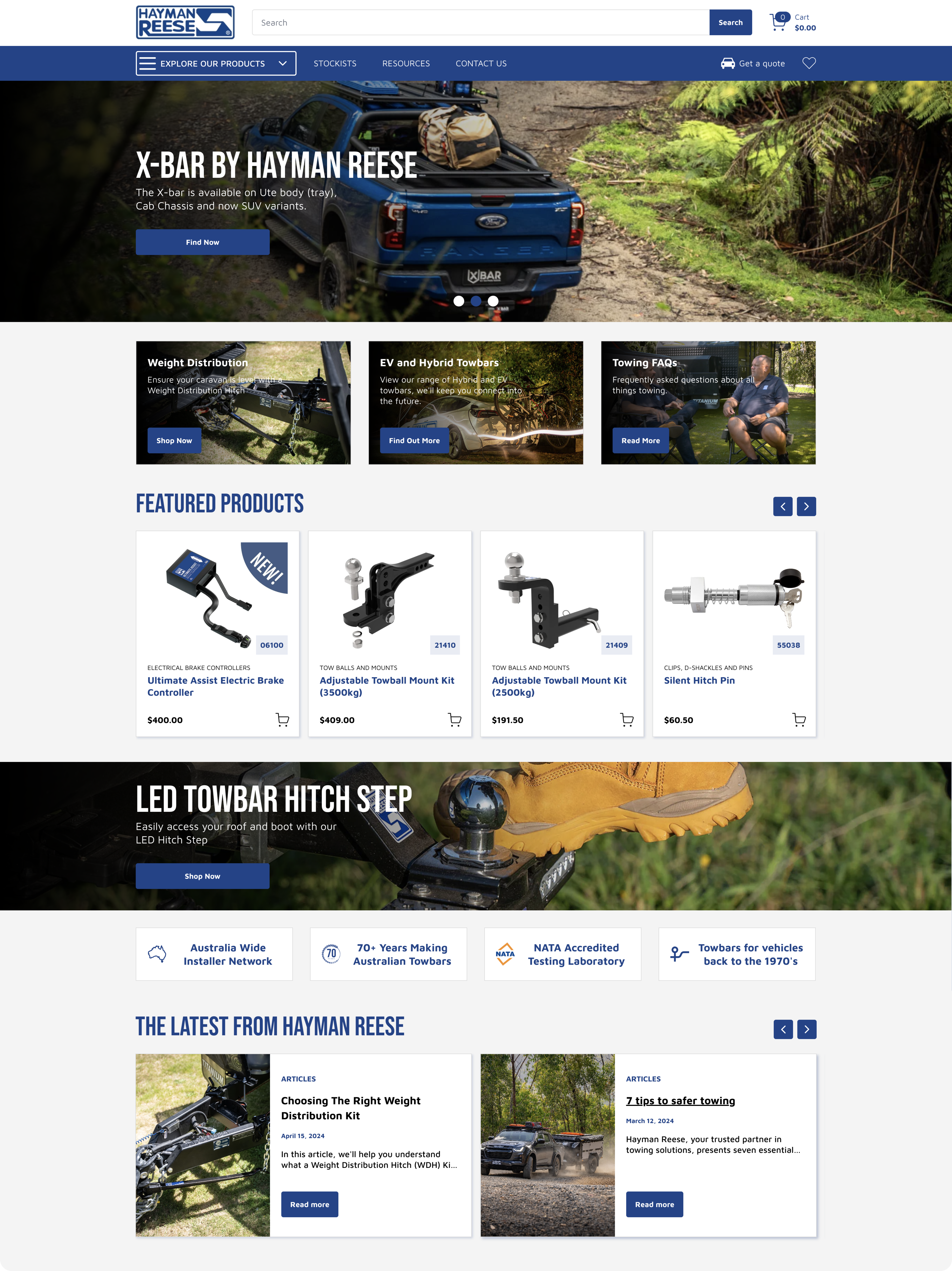 Established in 1951, Hayman Reese has been at the forefront of manufacturing and supplying towing and trailering products across Australia. Known for their unwavering commitment to quality and innovation, they have built a robust reputation among consumers and businesses. Despite their strong market presence, Hayman Reese recognised the need to modernise their sales approach by integrating a seamless online commerce system.