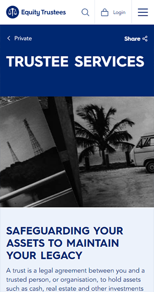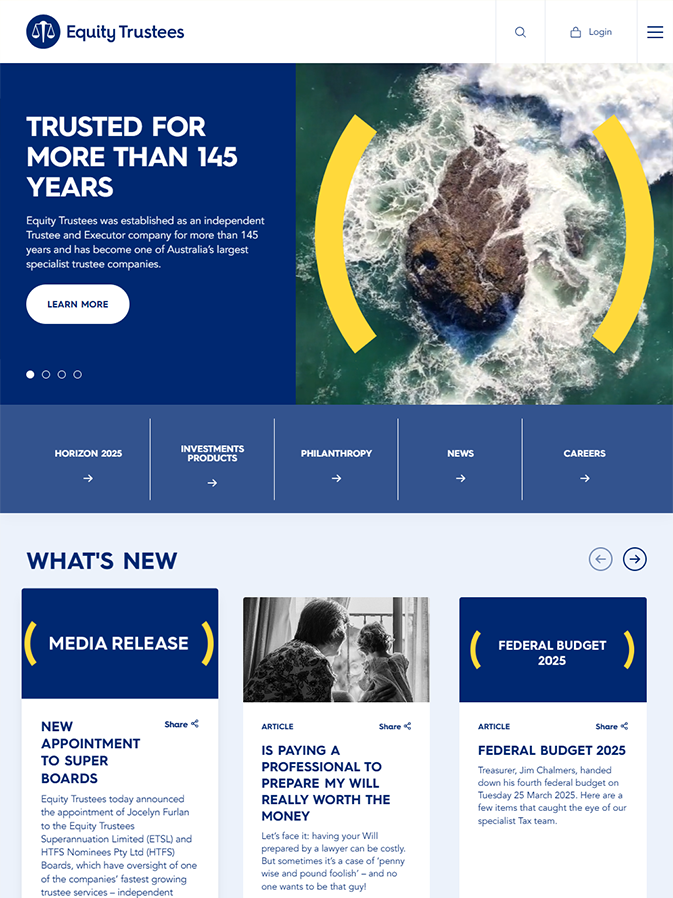 - Modernising the Design: Creating a user-centric website that reflects Equity Trustees’ commitment to trust and professionalism.